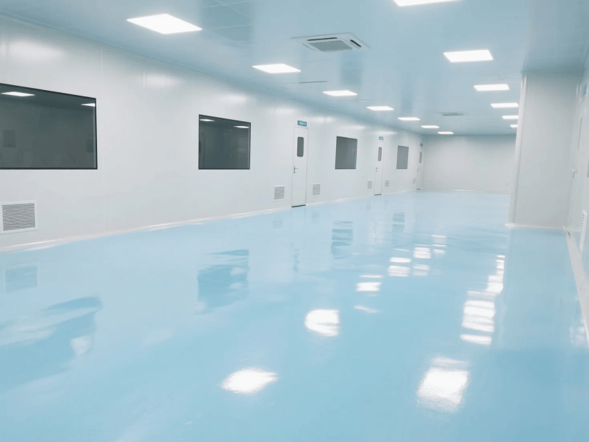 本方案依據(jù)ISO14644-1Class7(萬級)潔凈標(biāo)準設(shè)計,采用淺藍色彩鋼板與啞光白環(huán)氧樹脂墻面構(gòu)成主視覺系統(tǒng),營造科技感與潔凈度并重的生產(chǎn)環(huán)境。圍護結(jié)構(gòu)選用50mm厚雙面不銹鋼復(fù)合板,所有陰陽角均采用R50mm圓弧過渡處理,確保無衛(wèi)生死角。