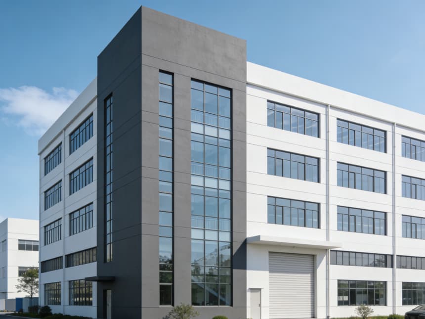 本次呈現(xiàn)的半導(dǎo)體器件生產(chǎn)廠房整體風(fēng)格簡約專業(yè),兼具工業(yè)嚴(yán)謹(jǐn)性與潔凈生產(chǎn)適配性。廠房外立面采用淺灰色工業(yè)涂層搭配大面積隔音保溫玻璃,既保障建筑密封性,又滿足車間自然采光需求,入口區(qū)域預(yù)留潔凈風(fēng)淋室安裝位,從源頭把控潔凈度。