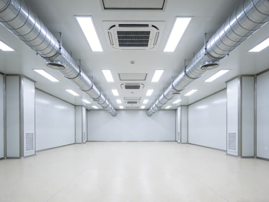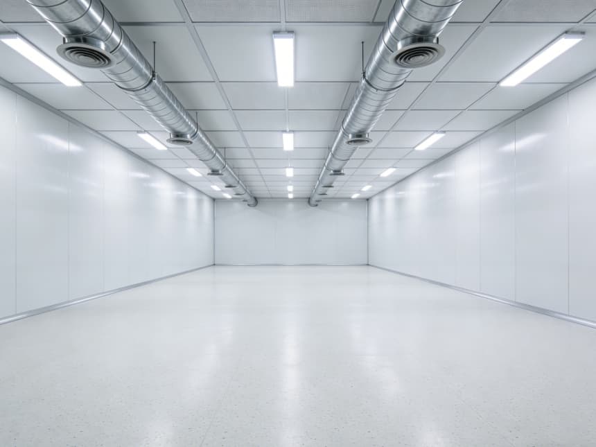 車間統(tǒng)一遵循半導(dǎo)體級潔凈標(biāo)準(zhǔn),地面為淺灰色防靜電環(huán)氧地坪,墻面采用白色無縫抗菌涂層,消除清潔死角。各車間功能精準(zhǔn)分區(qū):外延生長車間預(yù)留恒溫恒濕及氣體管路接口,適配高純度氣體輸送;光刻車間采用密閉避光設(shè)計(jì),預(yù)留高效過濾送回風(fēng)系統(tǒng);蝕刻車間強(qiáng)化耐腐蝕處理,配備排風(fēng)凈化預(yù)留接口;封裝測試車間規(guī)劃分區(qū)工位,預(yù)留精密檢測設(shè)備安裝基礎(chǔ)。