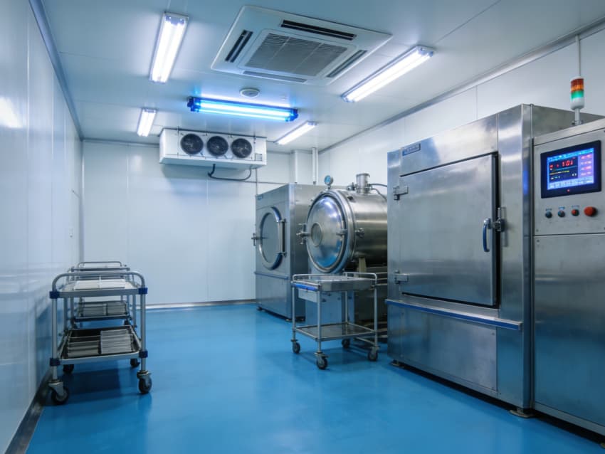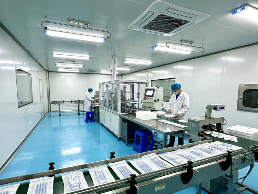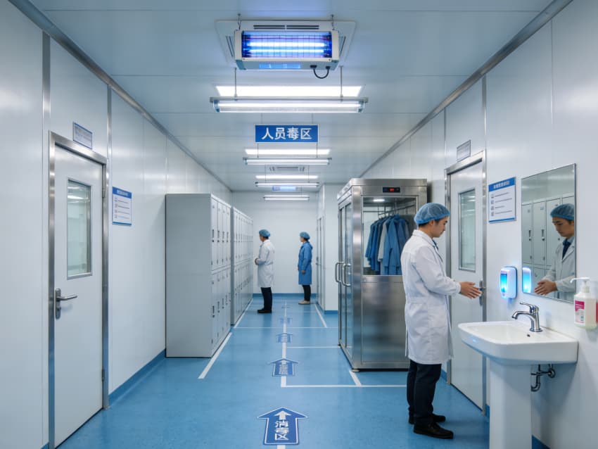 白色墻面采用食品級(jí)潔凈抗菌涂層,推行無(wú)縫拼接與高精度找直工藝,陰陽(yáng)角采用R50圓弧倒角設(shè)計(jì),徹底消除清潔死角,潔凈度穩(wěn)定達(dá)到Class 7級(jí)標(biāo)準(zhǔn)。廠房科學(xué)劃分無(wú)菌裝配區(qū)、滅菌區(qū)、檢測(cè)區(qū)等核心區(qū)域,各區(qū)域配備獨(dú)立層流凈化與負(fù)壓防護(hù)系統(tǒng),裝配區(qū)預(yù)留恒溫恒濕調(diào)控接口,滅菌區(qū)設(shè)置專(zhuān)用物料傳遞通道,全方位保障生產(chǎn)全流程的無(wú)菌性與合規(guī)性,為高品質(zhì)無(wú)菌醫(yī)療器械生產(chǎn)筑牢環(huán)境基礎(chǔ)。