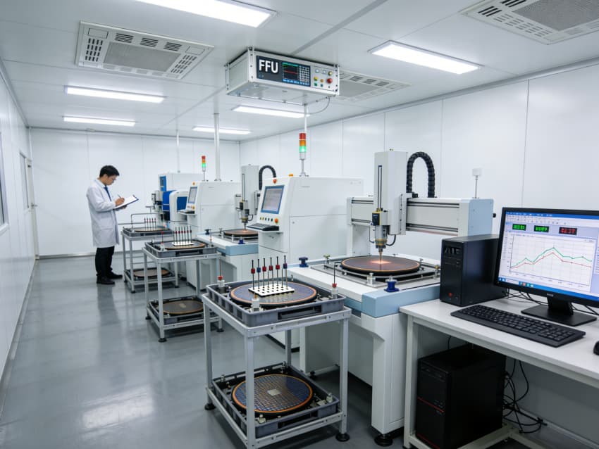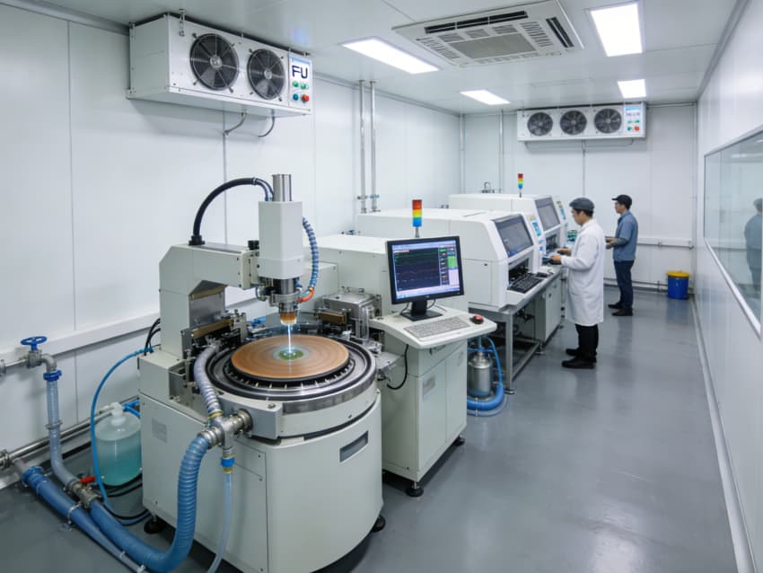 集成電路制造廠房內(nèi)部采用灰色地面與白色墻壁的簡約科技風(fēng)格,嚴(yán)格契合半導(dǎo)體行業(yè)Class 6級(jí)潔凈標(biāo)準(zhǔn),精準(zhǔn)匹配芯片制造對(duì)微塵、靜電、溫濕度的極致嚴(yán)苛要求。灰色地面選用防靜電高耐磨環(huán)氧自流平材質(zhì),經(jīng)基層固化、激光找平、防靜電涂層等多道精密工序,表面平整度誤差≤0.5mm/m,防靜電性能穩(wěn)定在10?-10?Ω,可耐受高頻次清潔消殺與精密設(shè)備碾壓,同時(shí)具備強(qiáng)抗化學(xué)腐蝕特性,適配光刻膠、蝕刻液等特種物料防護(hù)。