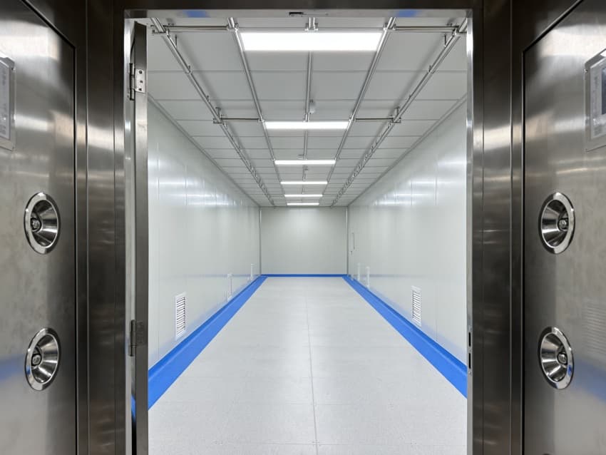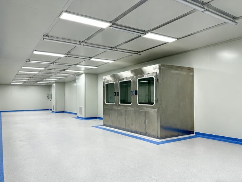 內部潔凈車間按電子元件生產流程,劃分成原料凈化區、精密組裝預備區、檢測過渡區,各區域以密封式通道銜接,適配芯片、電路板等產品生產需求。車間潔凈度執行萬級標準(ISO8級),每立方米空氣中≥0.5μm微粒數≤352000個,通過初效-中效-高效三級過濾系統,結合頂送底回氣流組織,實現每小時22次空氣置換。墻面用防靜電潔凈彩鋼板,地面為環氧樹脂自流平,溫度穩定在23±2℃、濕度45±5%RH,有效避免灰塵、靜電影響產品質量,符合電子行業生產規范。