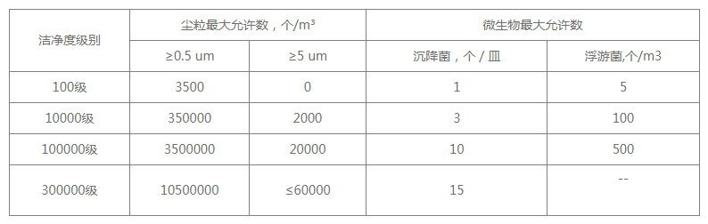 三、無菌醫(yī)療器械潔凈區(qū)潔凈度等級(jí)表