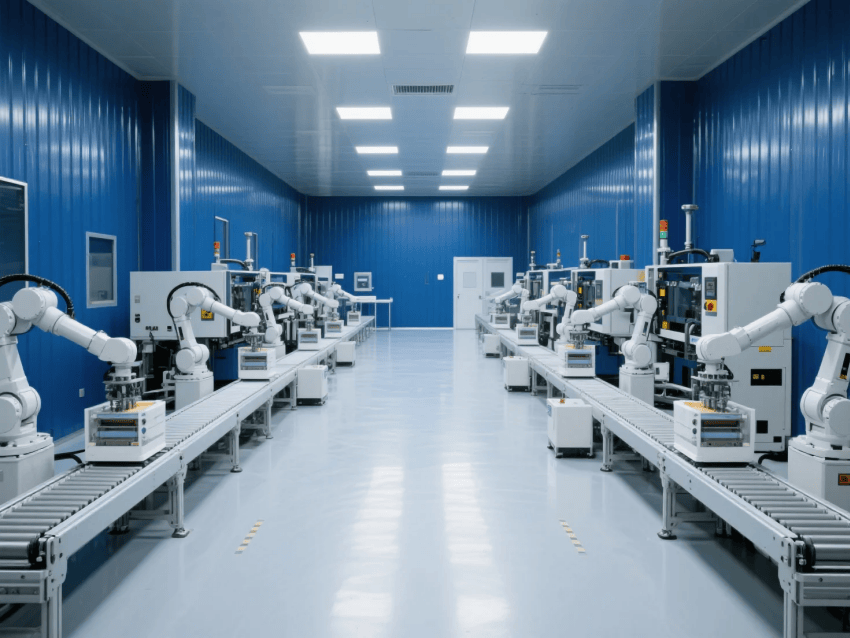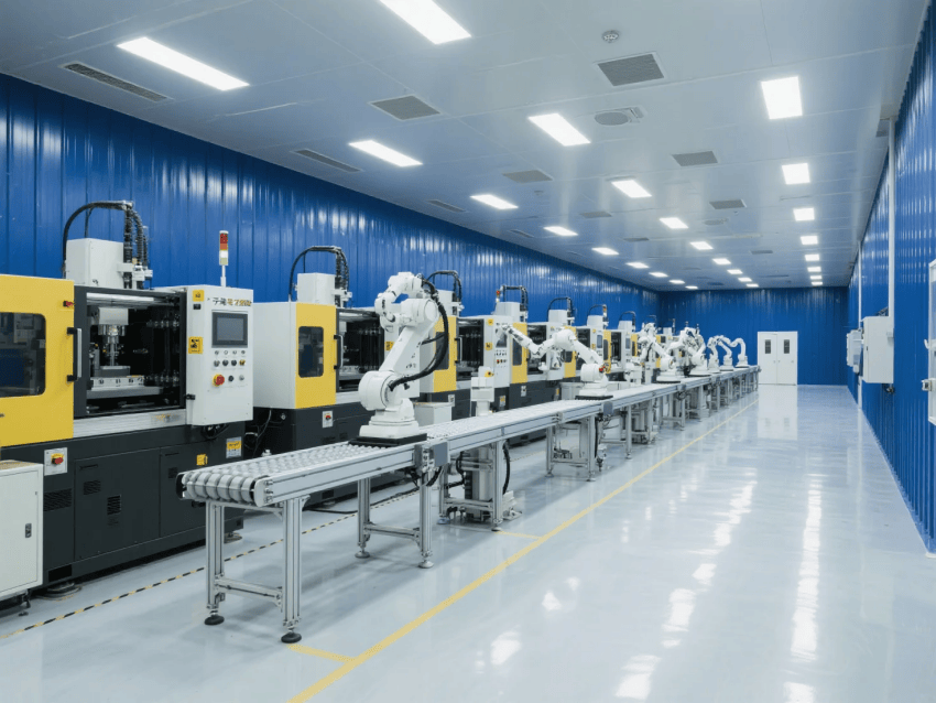 功能布局:原料區(qū)-注塑成型-檢測(cè)包裝呈U型流水線布局,工作站間設(shè)置快速傳遞窗。整體設(shè)計(jì)通過工業(yè)級(jí)材料與智能管控系統(tǒng)的結(jié)合,實(shí)現(xiàn)潔凈生產(chǎn)與高效運(yùn)營的雙重目標(biāo)。