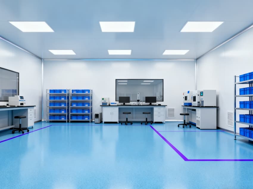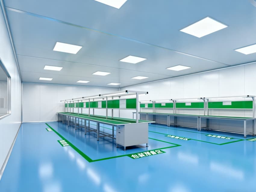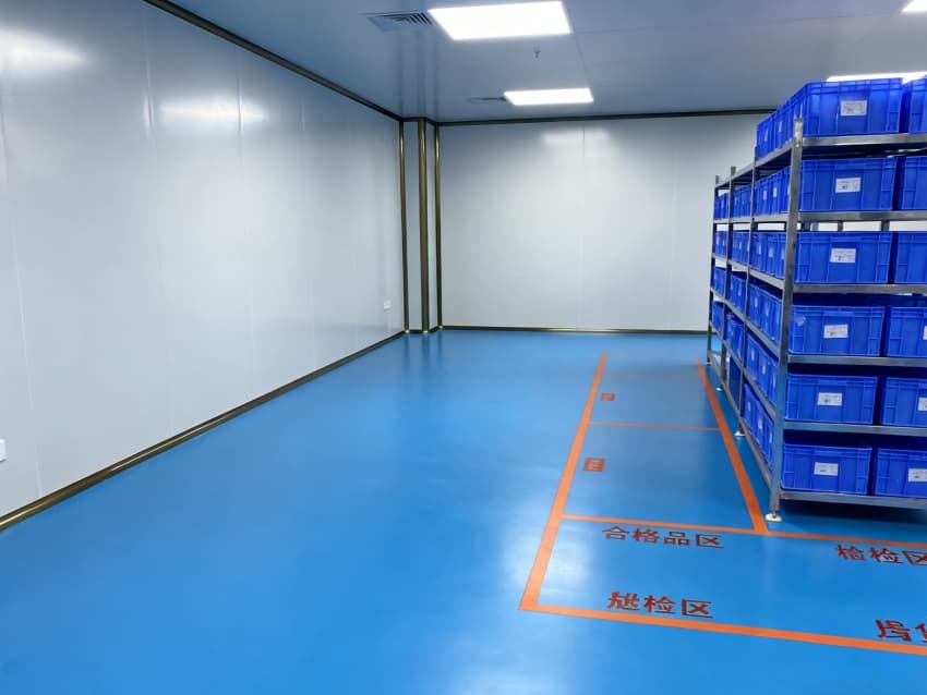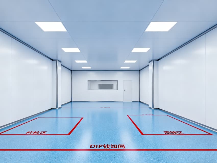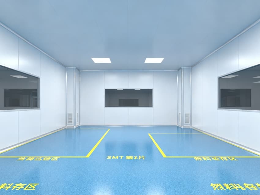 車間整體采用工業(yè)極簡主義設(shè)計(jì)風(fēng)格,以藍(lán)白為主色調(diào)實(shí)現(xiàn)功能分區(qū)可視化:地面選用定制化藍(lán)色防靜電環(huán)氧地坪,經(jīng)三層復(fù)合工藝處理,表面電阻值穩(wěn)定維持在10?-10?Ω標(biāo)準(zhǔn)區(qū)間,不僅能有效泄放靜電,更通過添加納米級耐磨顆粒提升抗壓強(qiáng)度,配合防滑紋理設(shè)計(jì),確保日均萬步以上的高頻作業(yè)場景下仍能保持表面完整性;四周白色防塵墻壁采用啞光抗菌涂層,配合弧形墻角設(shè)計(jì)消除積塵死角,在減少光線反射干擾的同時,可抑制99.9%的常見微生物滋生。頂部集成FFU(風(fēng)機(jī)過濾單元)陣列與智能氣流監(jiān)測系統(tǒng),通過12級梯度風(fēng)壓調(diào)控,實(shí)現(xiàn)每小時600次換氣頻率,持續(xù)維持ISO5級(千級)潔凈度標(biāo)準(zhǔn),確保直徑≥0.5μm的懸浮粒子濃度控制在35200個/m³以內(nèi),全方位隔絕粉塵、纖維、微生物等污染源對精密元器件的潛在威脅。