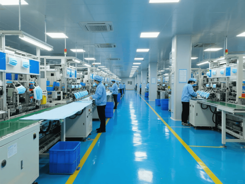 本方案采用"醫(yī)療工業(yè)極簡(jiǎn)風(fēng)",符合YY/T0969-2013口罩行業(yè)標(biāo)準(zhǔn)。車(chē)間按功能分區(qū):
